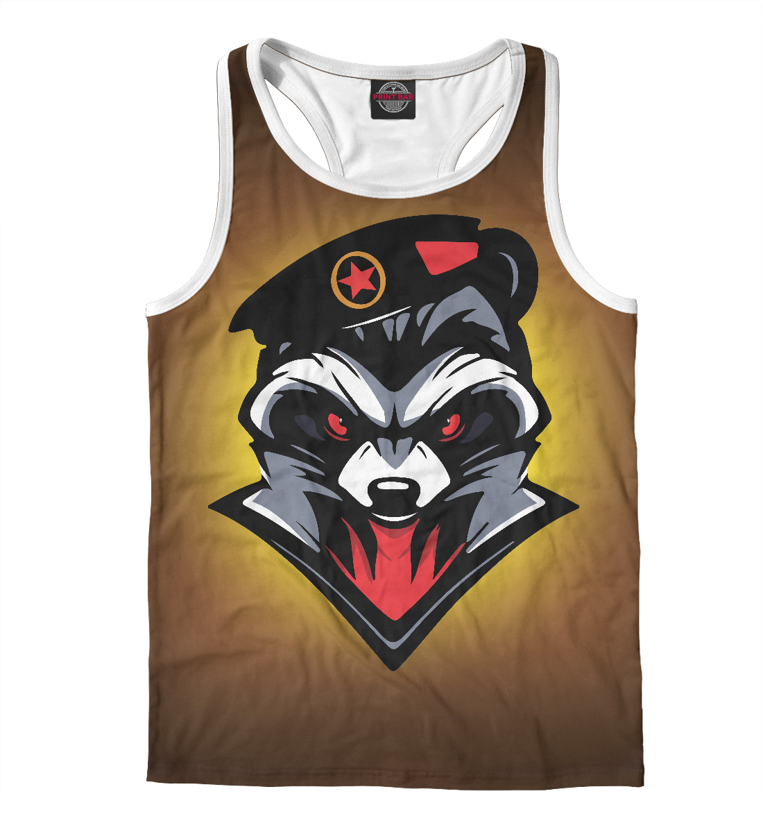 Мужская майка-борцовка с принтом «Енот Морпех на желтом фоне»