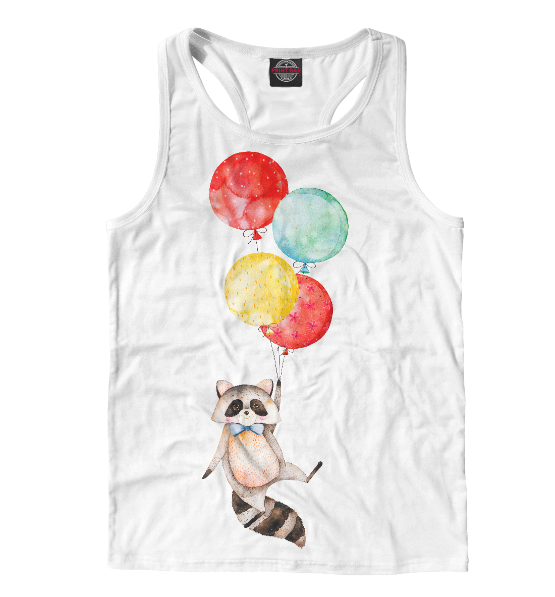 Мужская майка-борцовка с принтом «Енот на воздушном шарике»