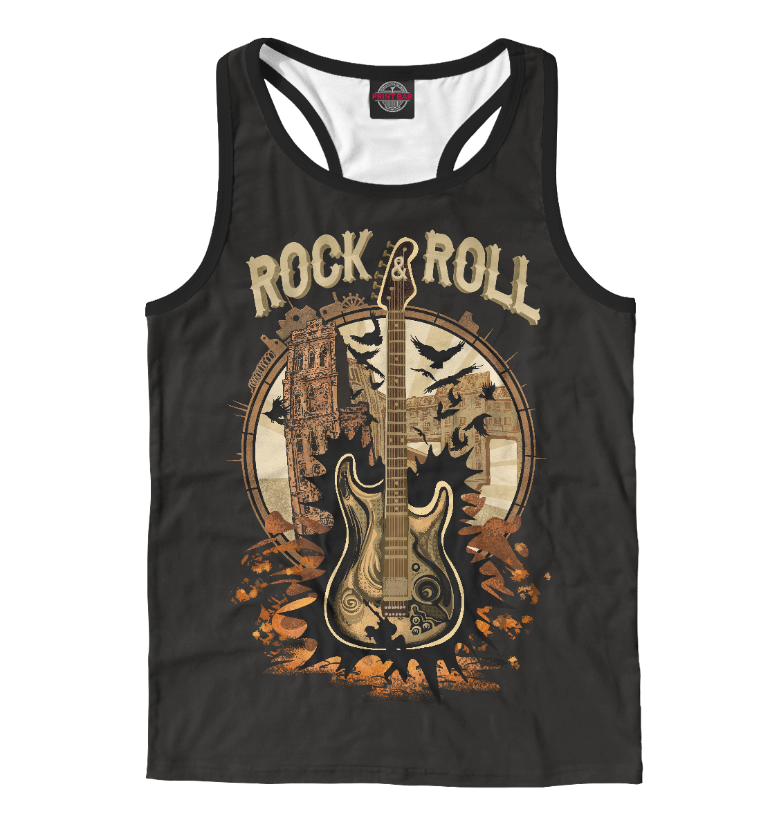 Мужская майка-борцовка с принтом «Гитара фентези в стиле стимпанка с город»