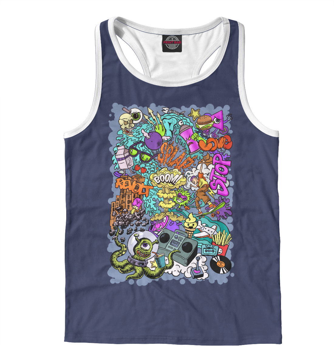 Мужская майка-борцовка с принтом «Граффити с инопланетянином на синем фоне»