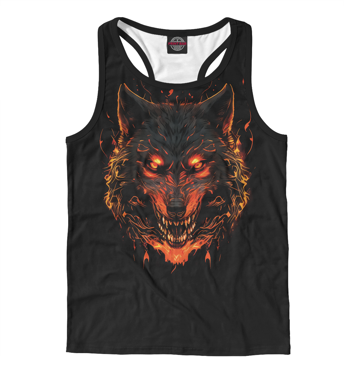 Мужская майка-борцовка с принтом «Грозный огненный волк»