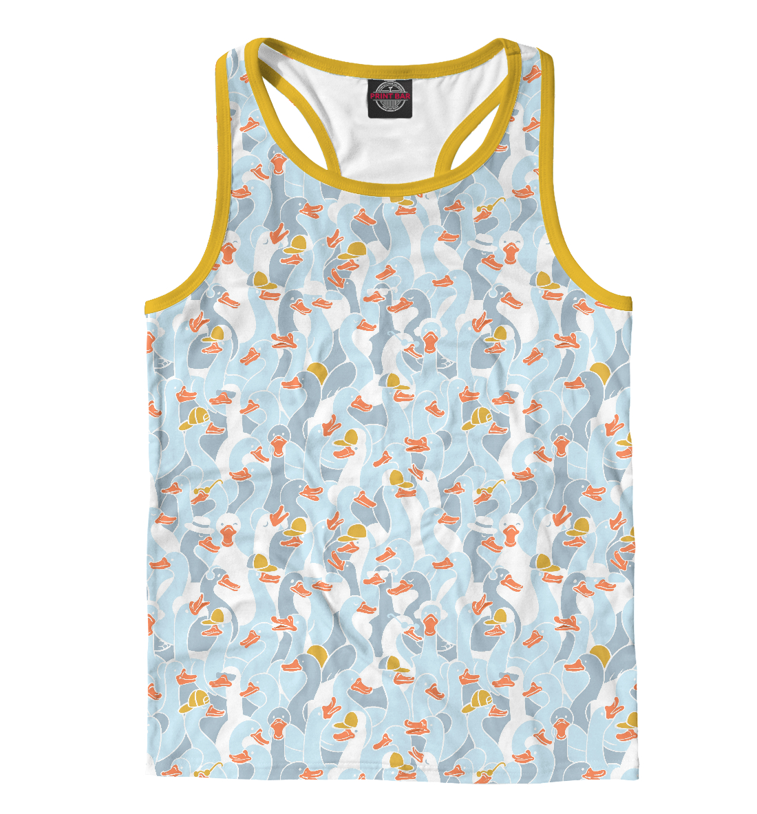 Мужская майка-борцовка с принтом «Гуси серебристо серый с белой окантовкой»