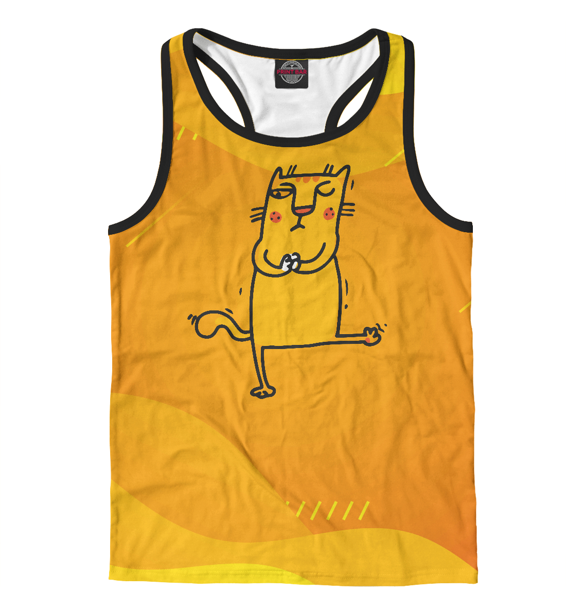 Мужская майка-борцовка с принтом «Хитрый желтый кот»