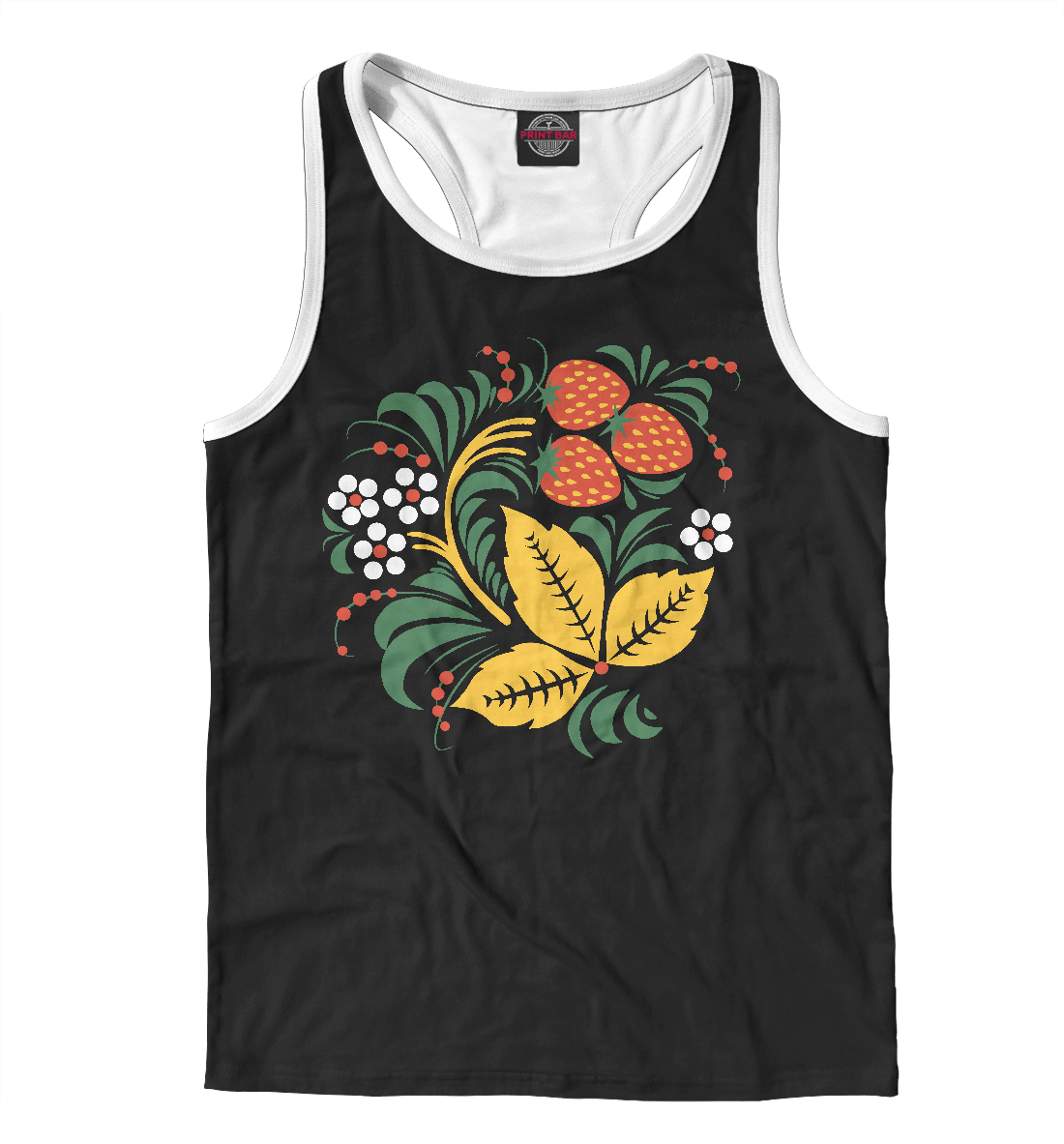 Мужская майка-борцовка с принтом «Хохлома роспись Клубника»