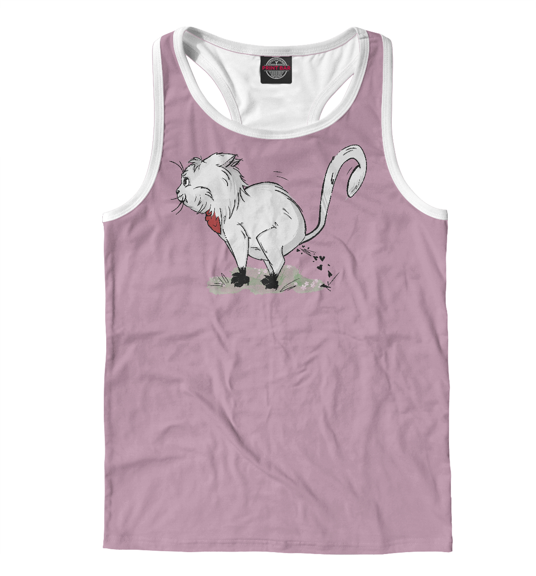 Мужская майка-борцовка с принтом «Хулиганистый котик (розовый фон)»