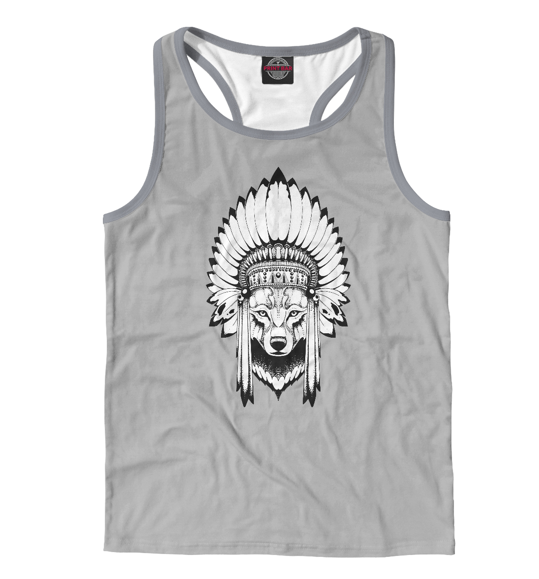 Мужская майка-борцовка с принтом «Индеец волк на сером фоне»