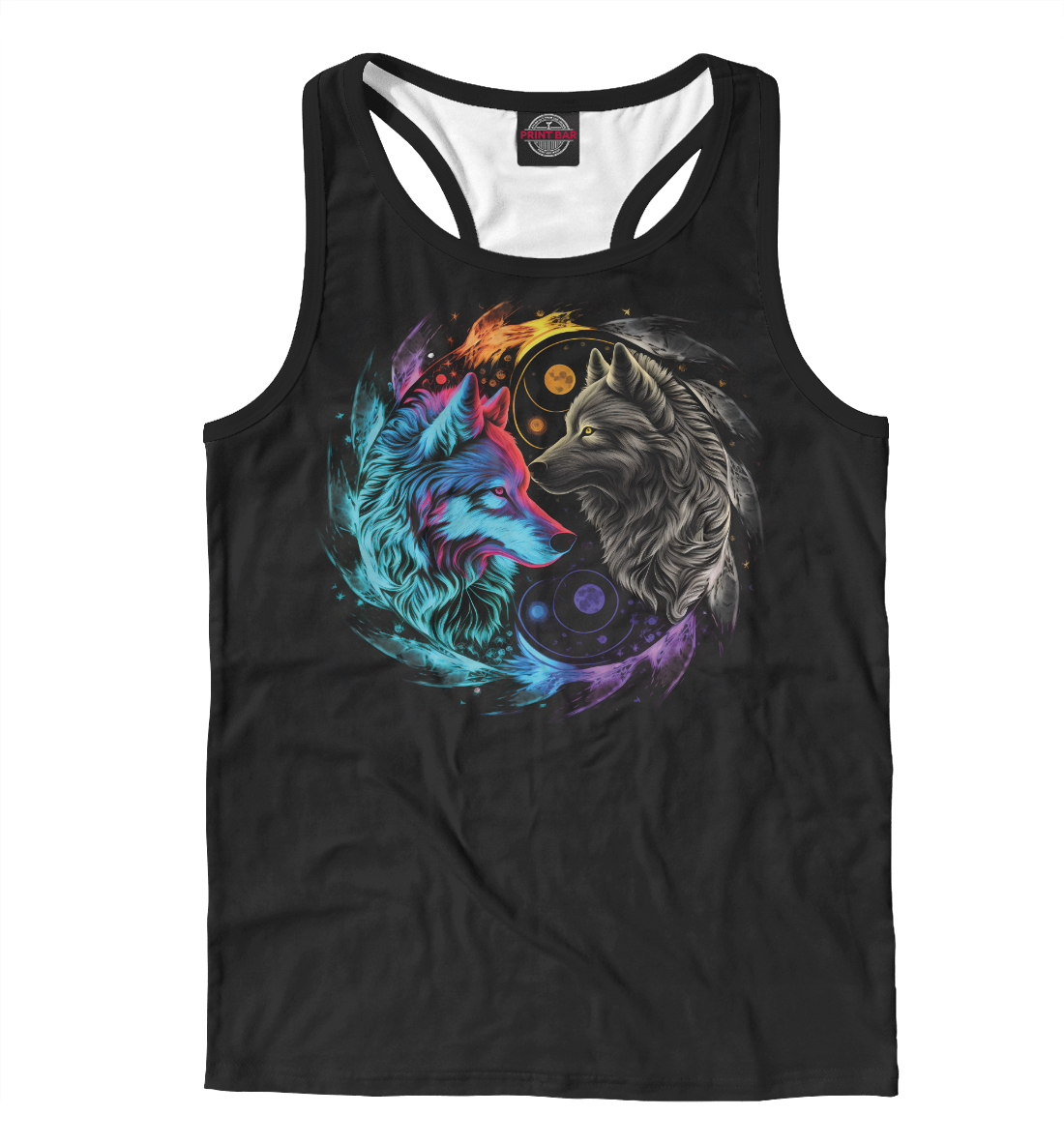 Мужская майка-борцовка с принтом «Инь-янь неоновые волки»