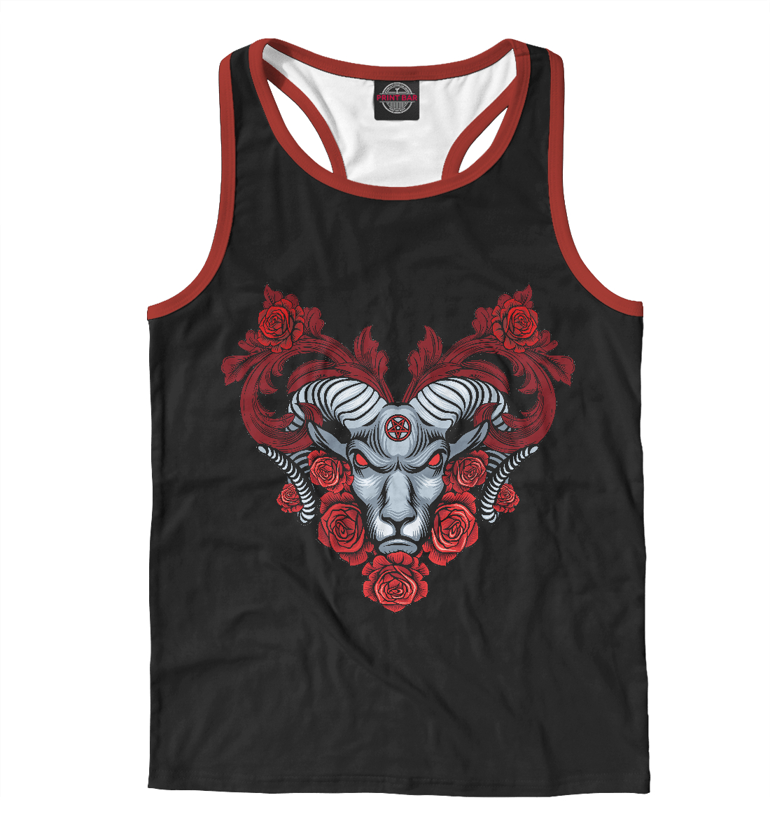Мужская майка-борцовка с принтом «Эзотерический баран с розами»