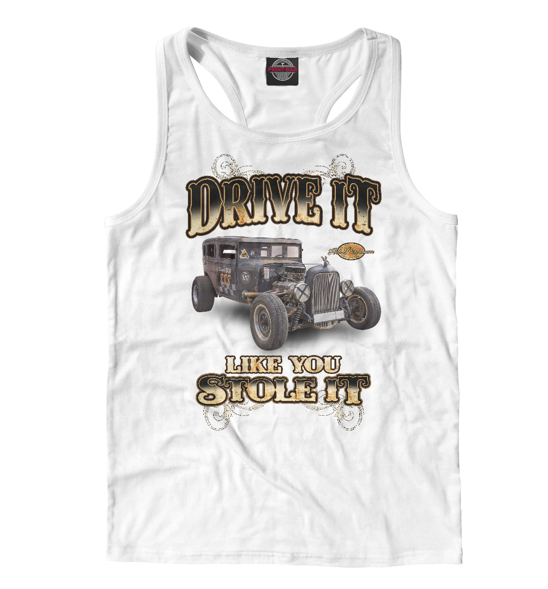 Мужская майка-борцовка с принтом «Классический хот род на белом фоне»