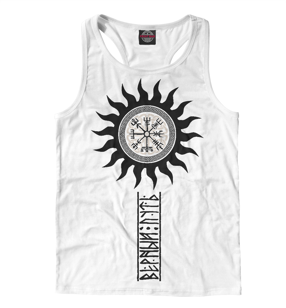 Мужская майка-борцовка с принтом «Компас рун воинов - верный путь воина»