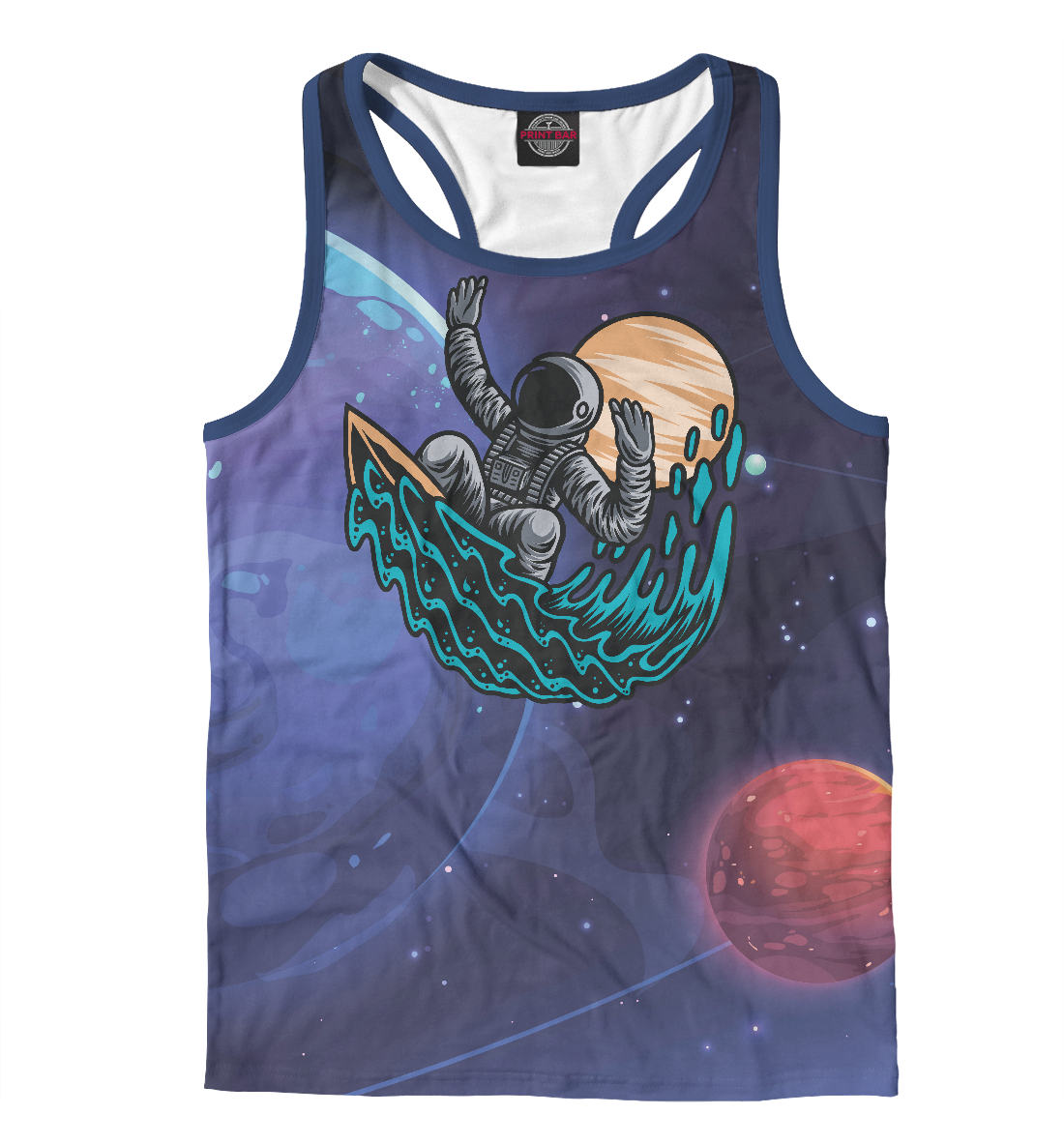 Мужская майка-борцовка с принтом «Космонавт летит на волне»