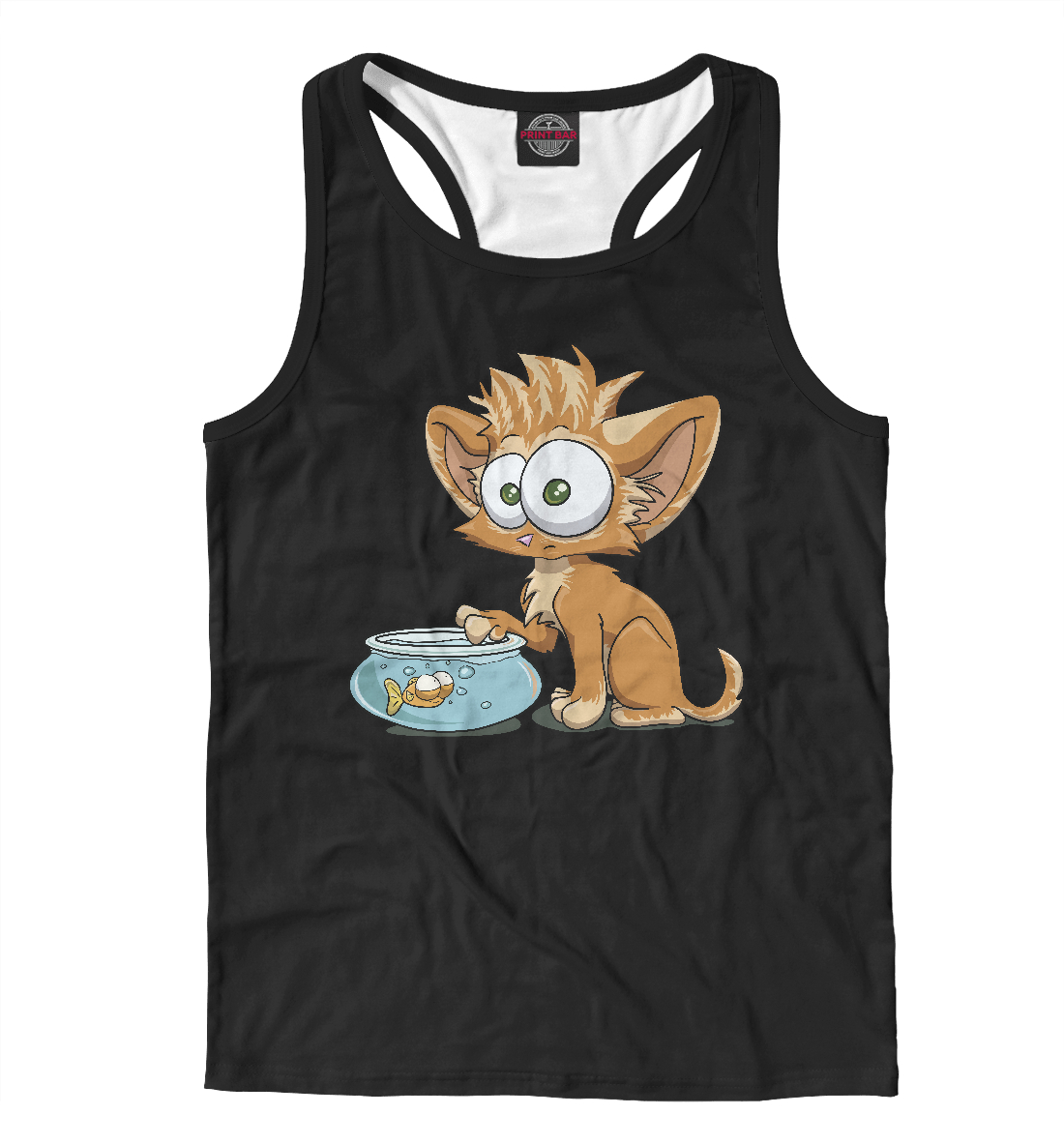 Мужская майка-борцовка с принтом «Кот и рыбка»