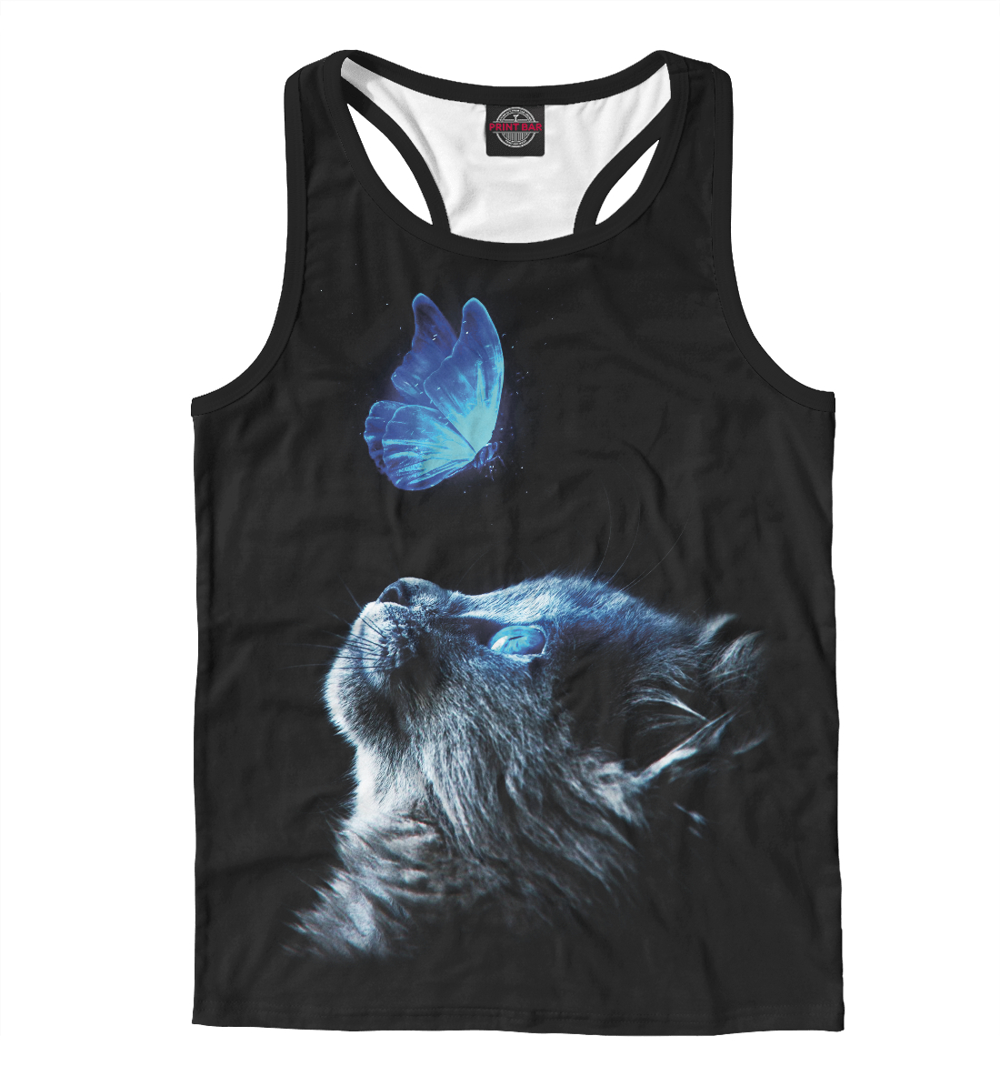 Мужская майка-борцовка с принтом «Котенок и бабочка неон»