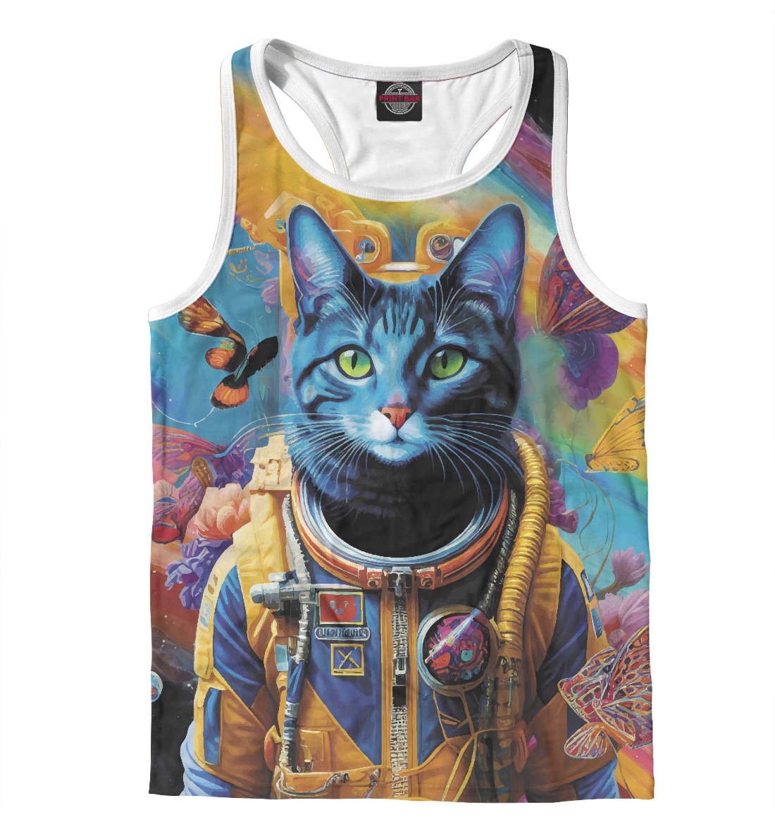 Мужская майка-борцовка с принтом «Котик бравый космонавт»