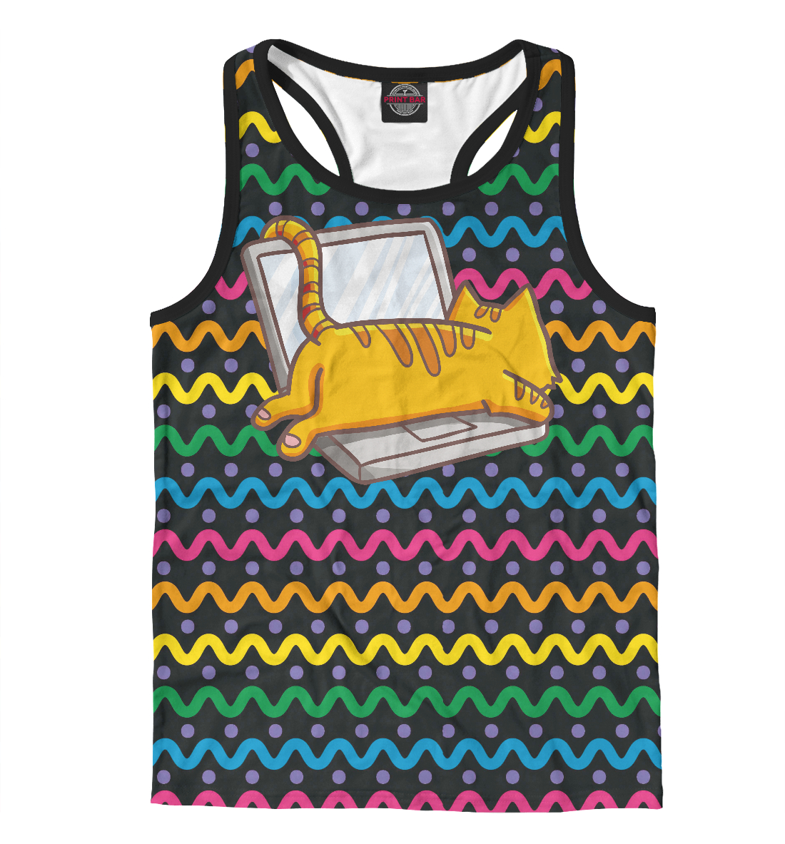Мужская майка-борцовка с принтом «Котик лежит на ноутбуке»
