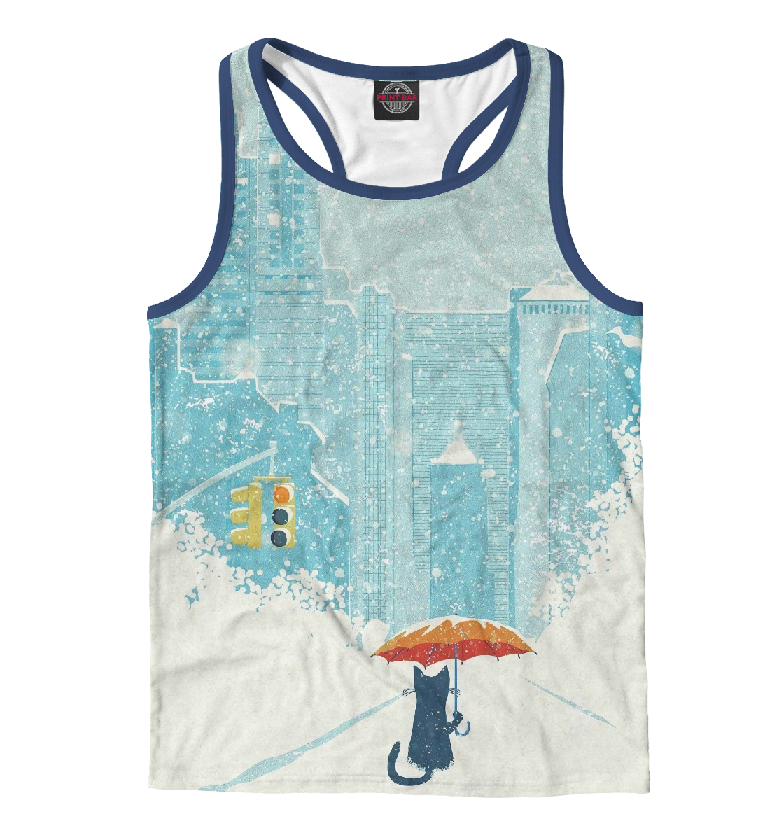 Мужская майка-борцовка с принтом «Котик под зонтом»