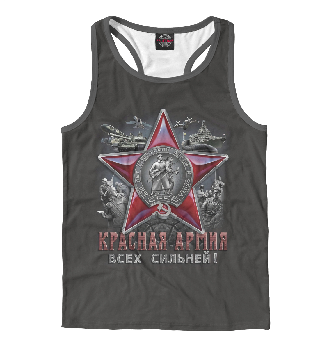 Мужская майка-борцовка с принтом «Красная Армия всех сильней!»