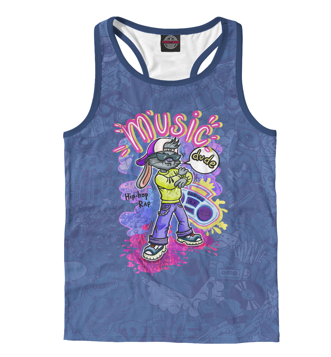Мужская майка-борцовка с принтом «Кролик-рэпер»