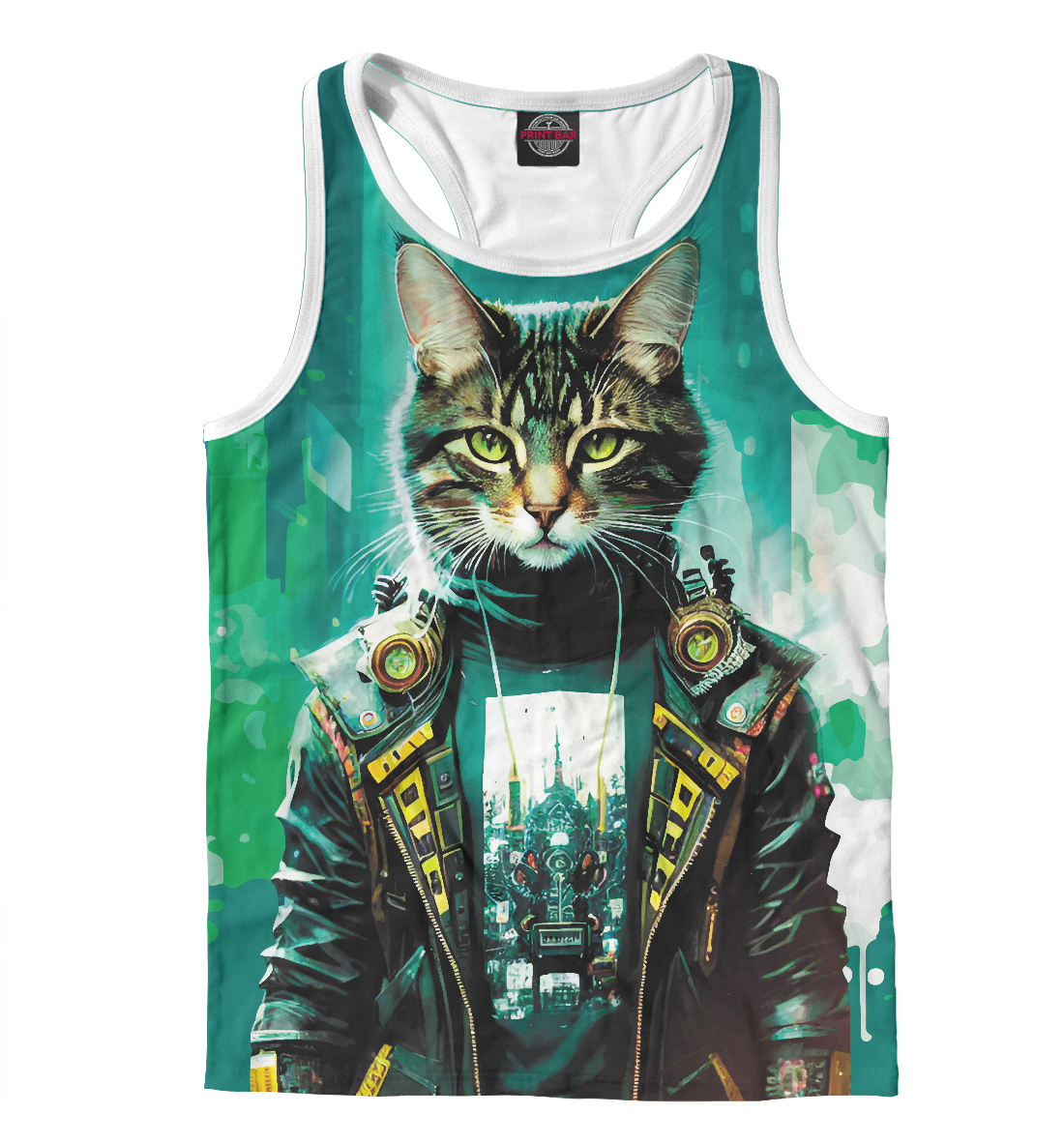 Мужская майка-борцовка с принтом «Крутой котяра на фоне высоток»