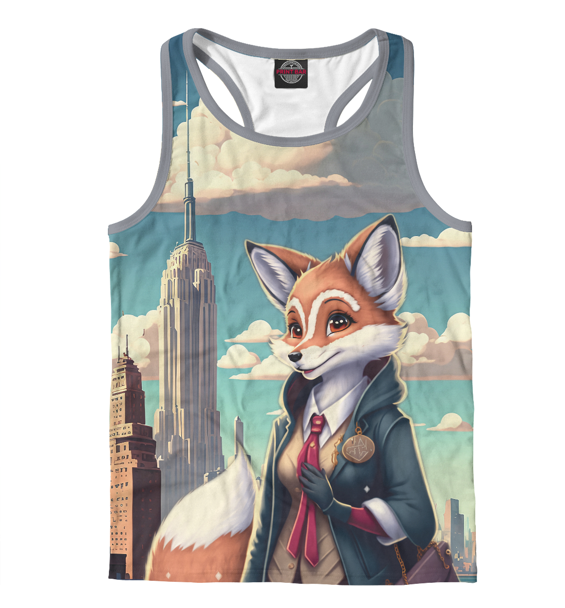 Мужская майка-борцовка с принтом «Лисица в мегаполисе»