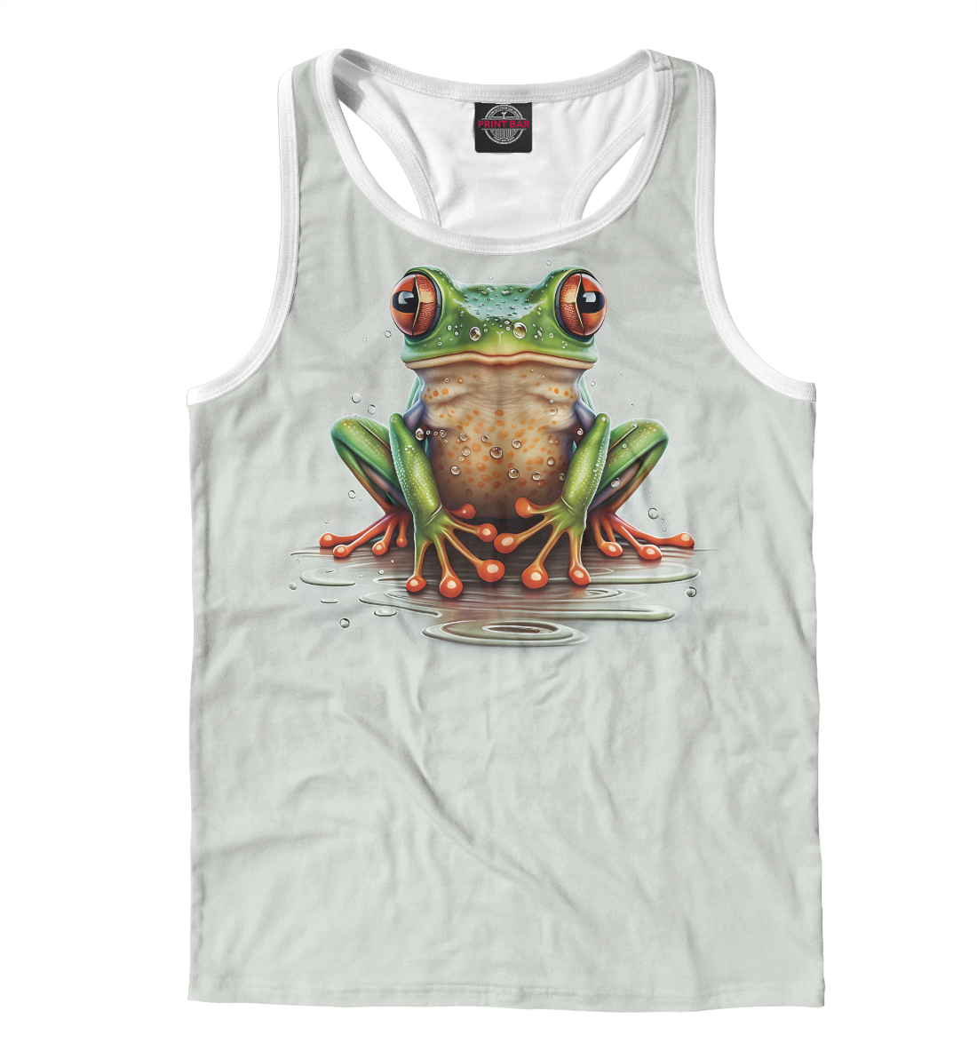 Мужская майка-борцовка с принтом «Лягушка на бежевом фоне»