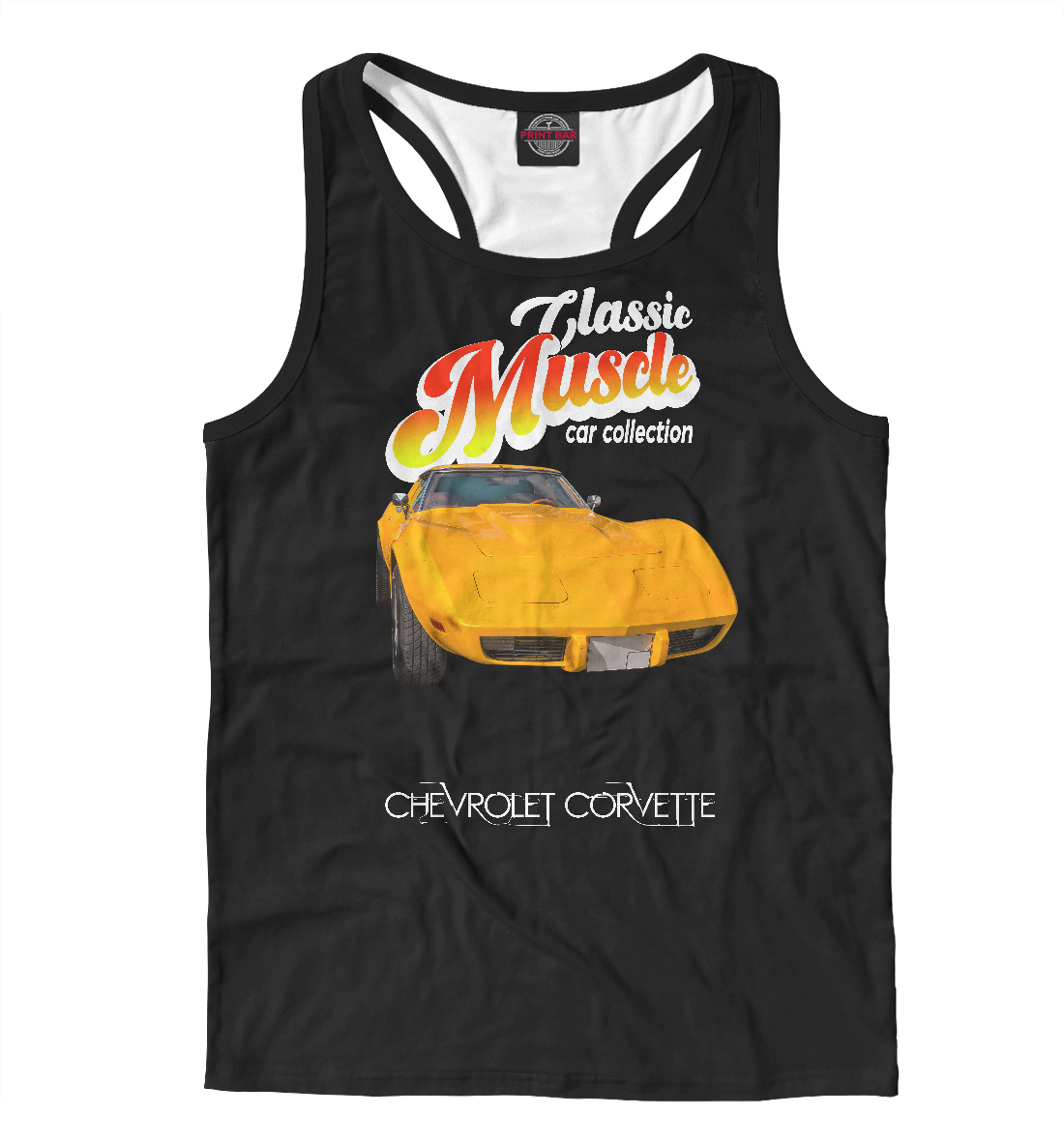 Мужская майка-борцовка с принтом «Маслкар Chevrolet Corvette на черном фон»