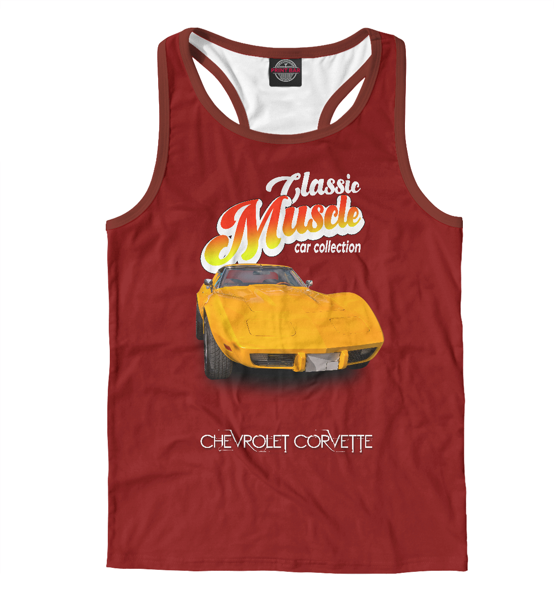 Мужская майка-борцовка с принтом «Маслкар Corvette на красном фоне»