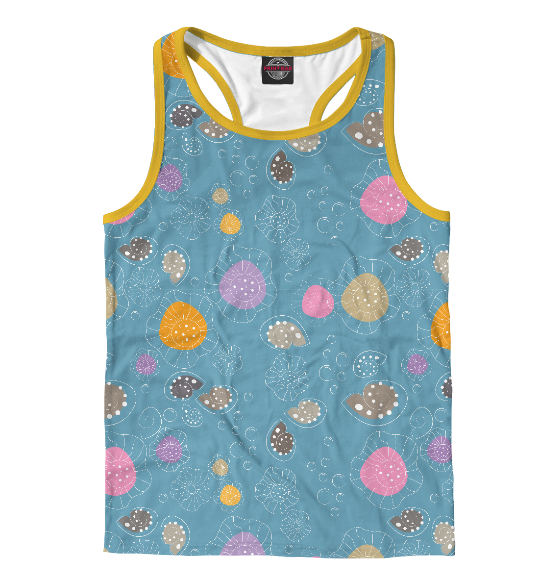 Мужская майка-борцовка с принтом «Медузы и ракушки.»