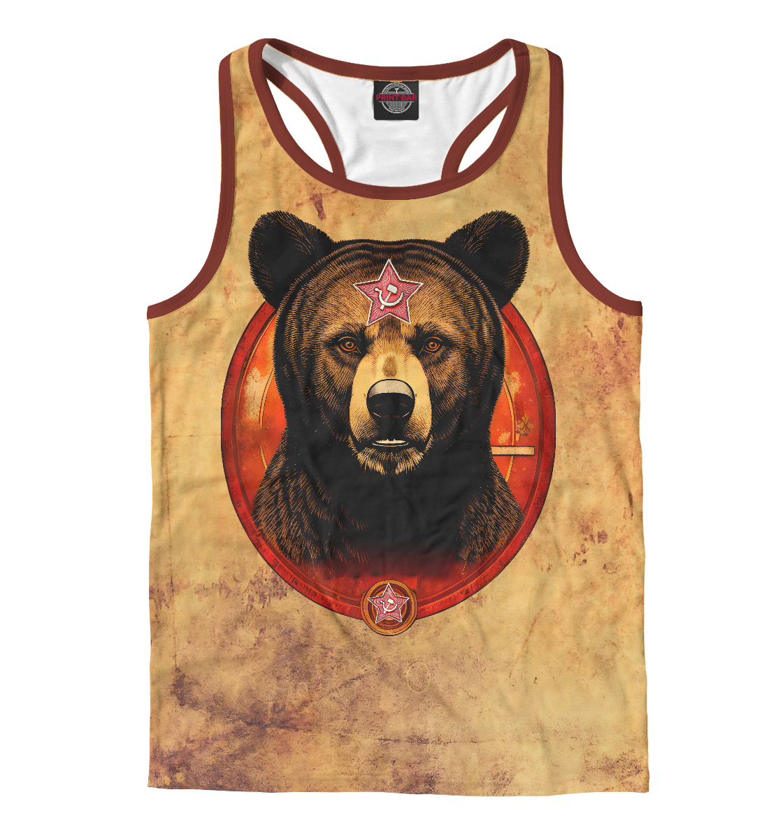 Мужская майка-борцовка с принтом «Медведь с красной звездой»