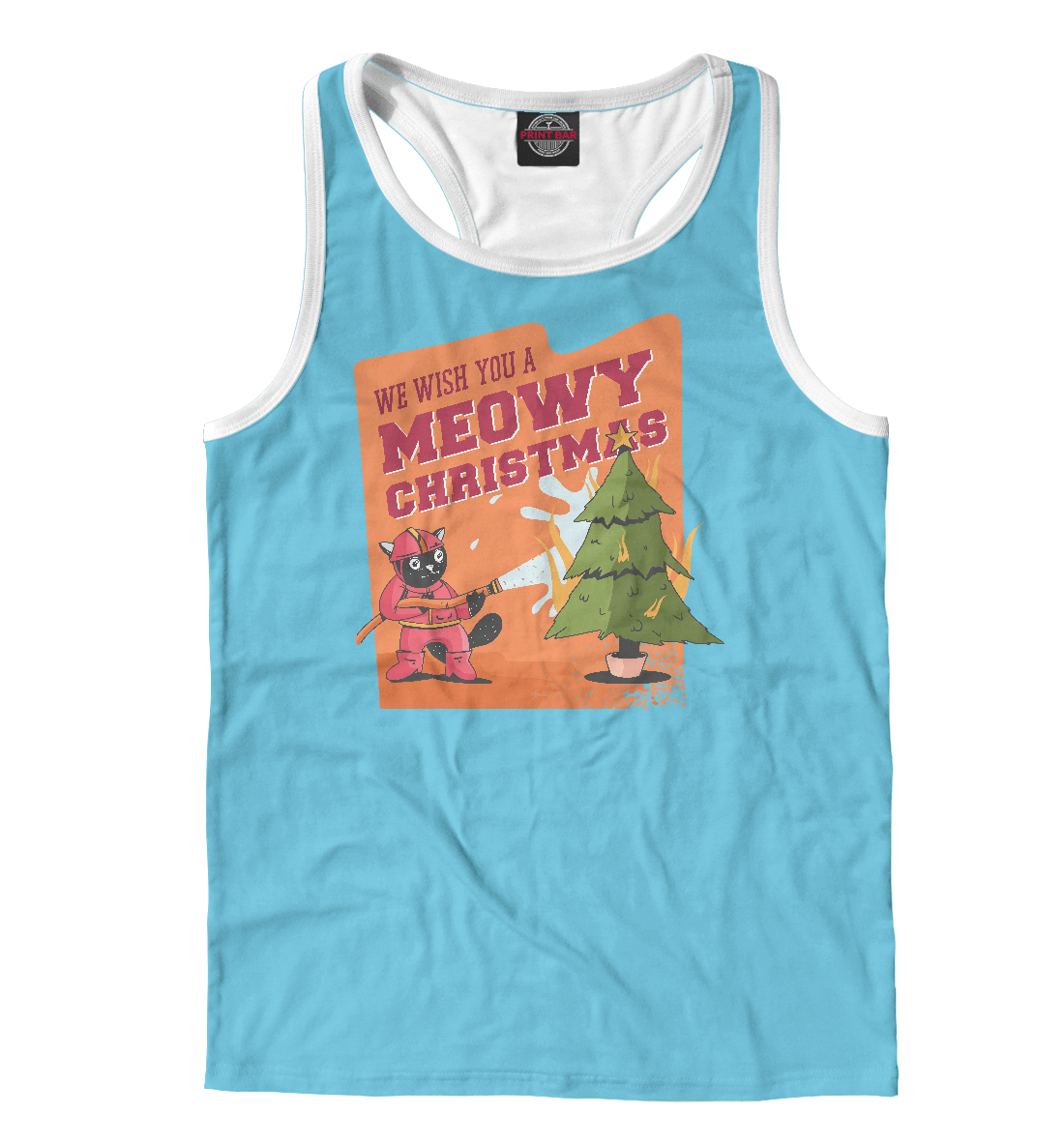 Мужская майка-борцовка с принтом «Meowy christmas»