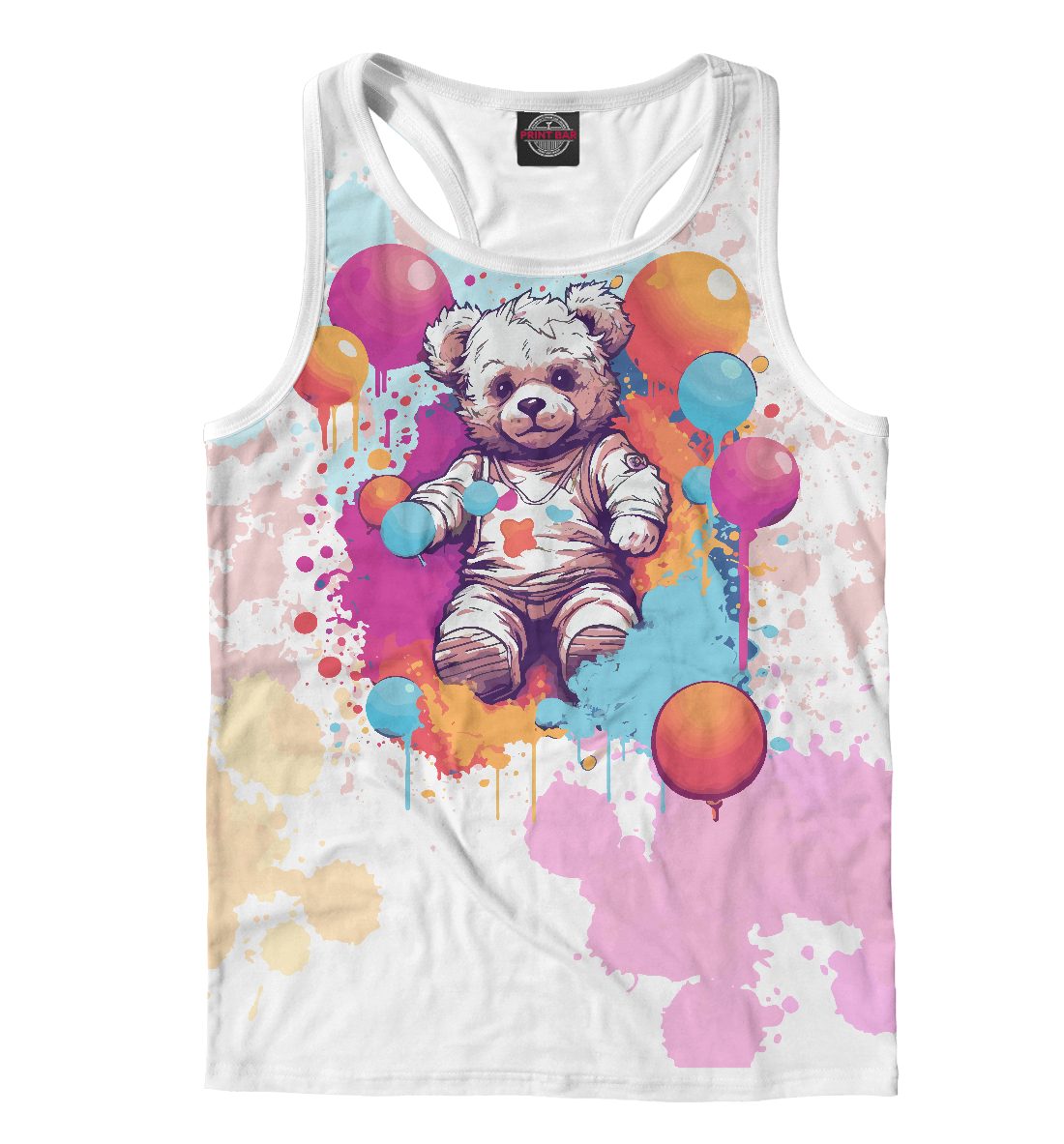 Мужская майка-борцовка с принтом «Мишка с шариками»