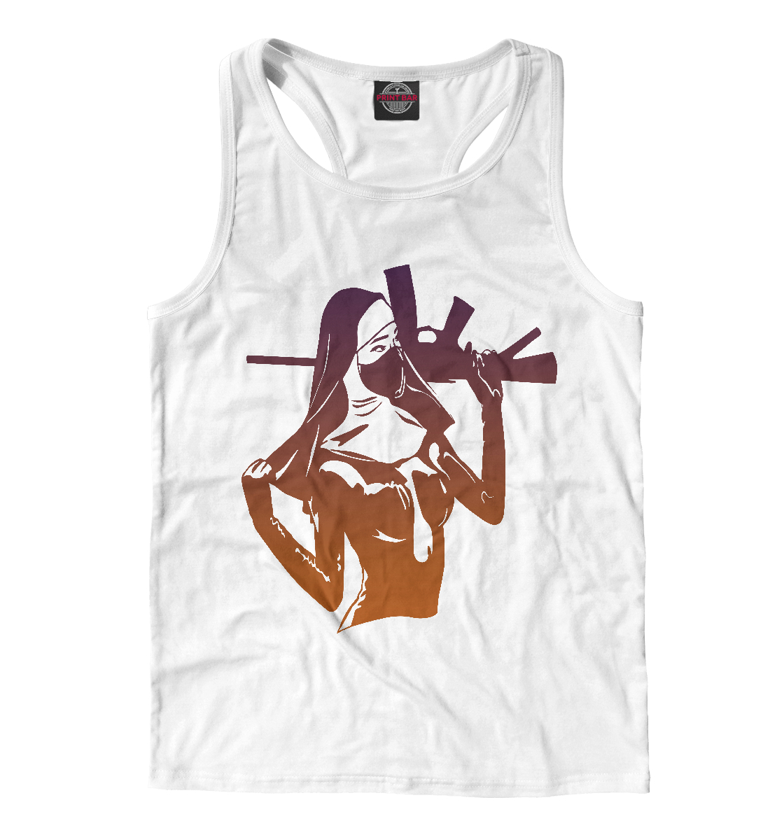 Мужская майка-борцовка с принтом «Монашка с автоматом»