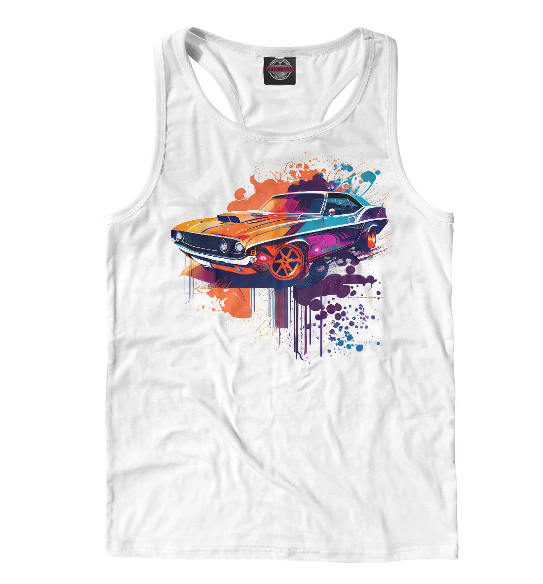 Мужская майка-борцовка с принтом «Muscle car в каплях краски»