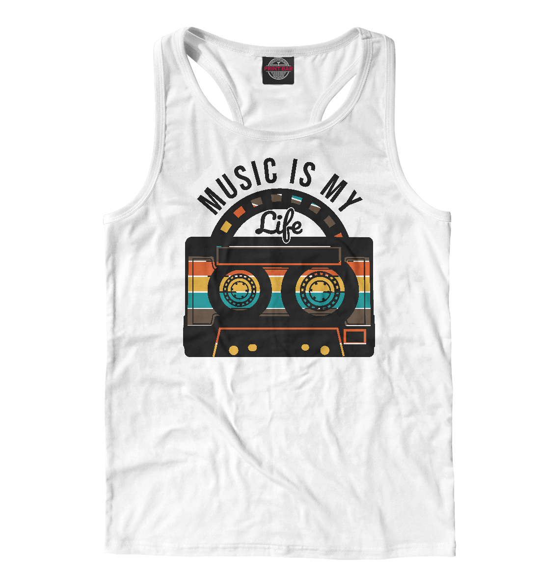 Мужская майка-борцовка с принтом «Music is my life (касета)»