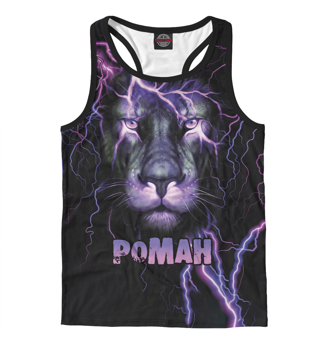 Мужская майка-борцовка с принтом «Неоновый лев Роман»