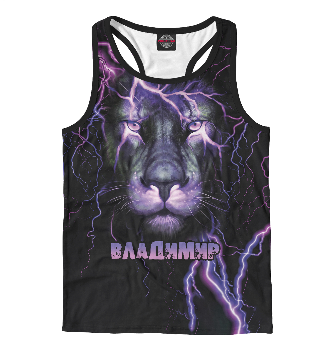 Мужская майка-борцовка с принтом «Неоновый лев Владимир»