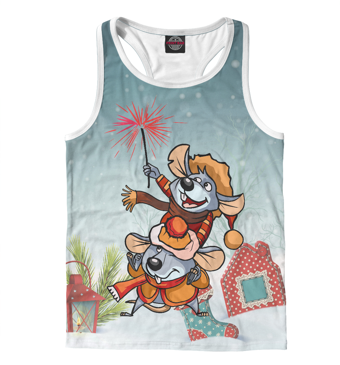 Мужская майка-борцовка с принтом «Новогодние мыши»