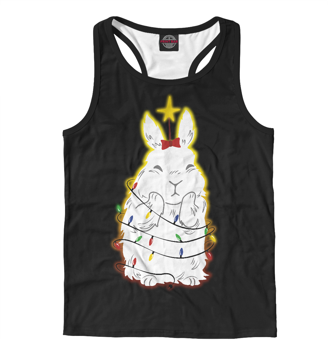 Мужская майка-борцовка с принтом «Новогодний белый кролик»