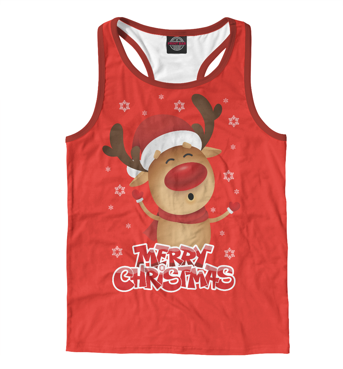 Мужская майка-борцовка с принтом «Новогодний олень»
