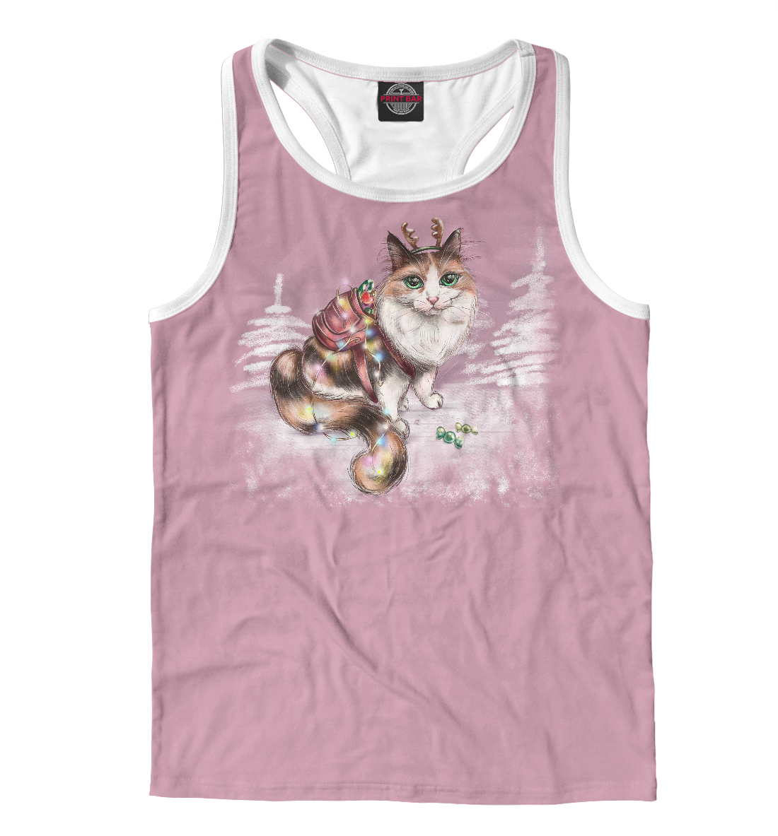 Мужская майка-борцовка с принтом «Новогодняя кошечка»