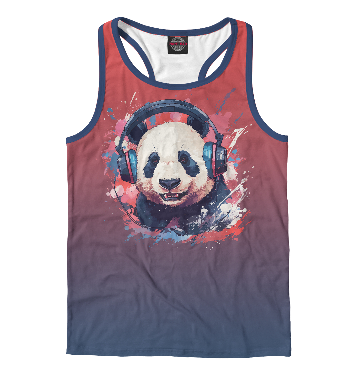 Мужская майка-борцовка с принтом «Панда в наушниках»