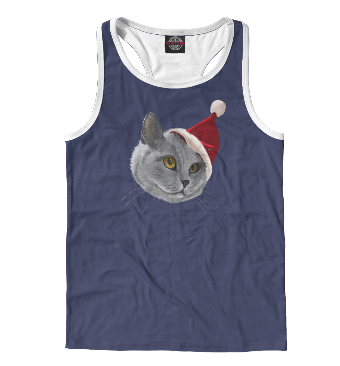 Мужская майка-борцовка с принтом «Праздничный кот»