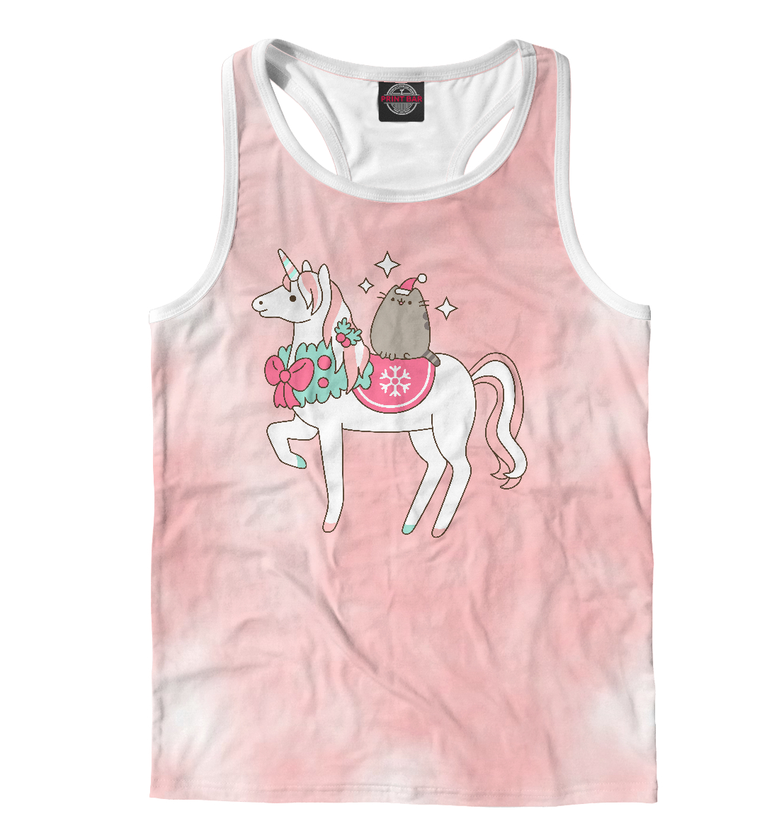 Мужская майка-борцовка с принтом «Pusheen на Единороге»