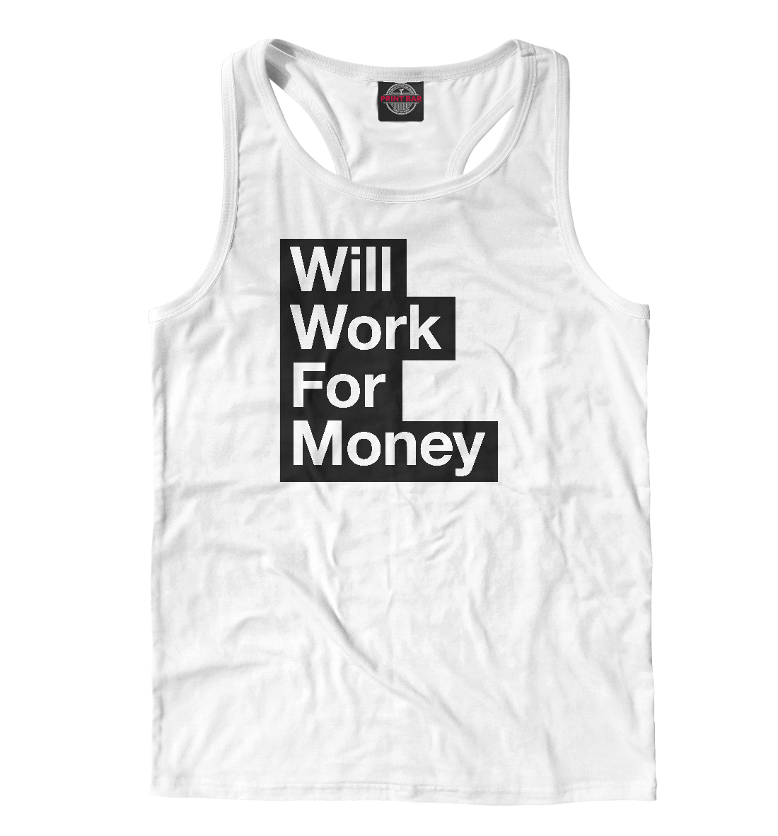 Мужская майка-борцовка с принтом «Работаю за денньги»