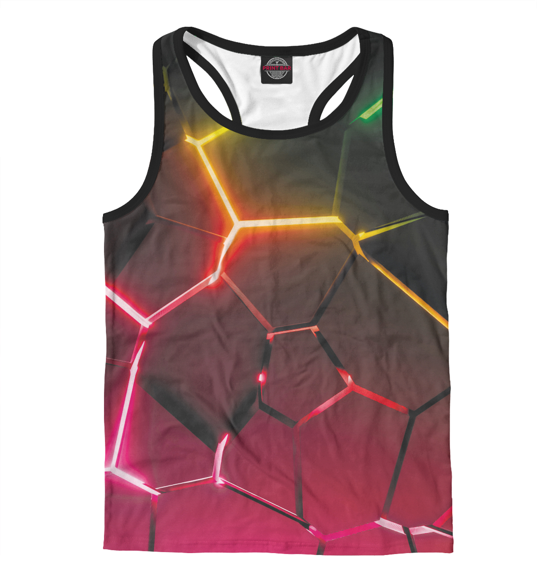 Мужская майка-борцовка с принтом «Разлом ярких неоновых плит - геометрия»