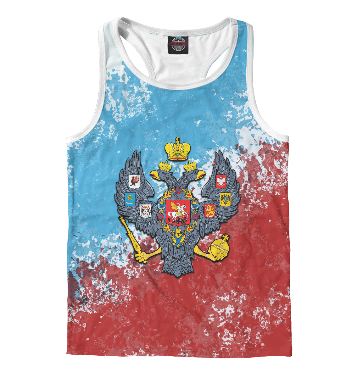 Мужская майка-борцовка с принтом «Russia триколор герб»