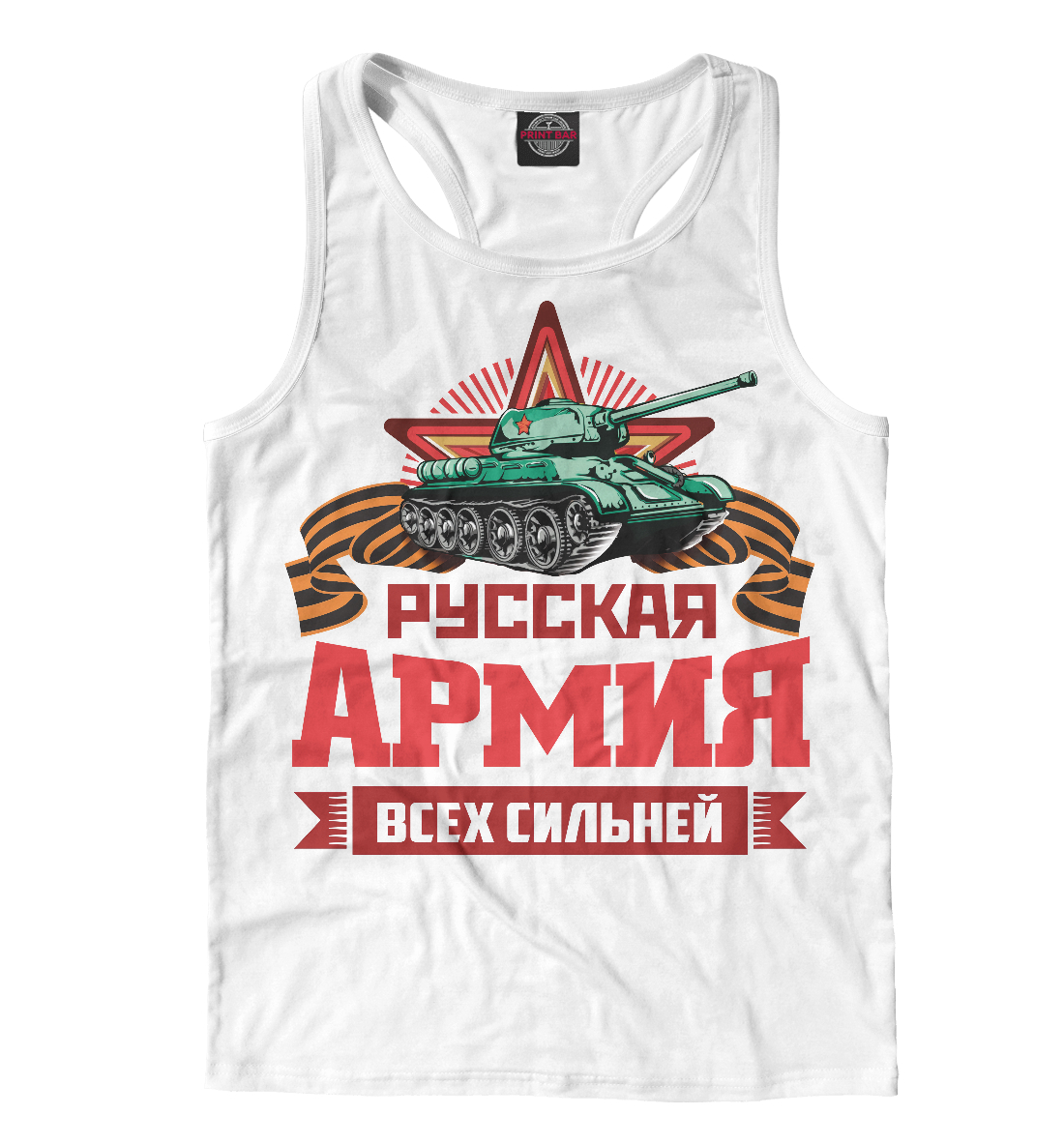 Мужская майка-борцовка с принтом «Русская Армия всех сильней! (белый фон)»
