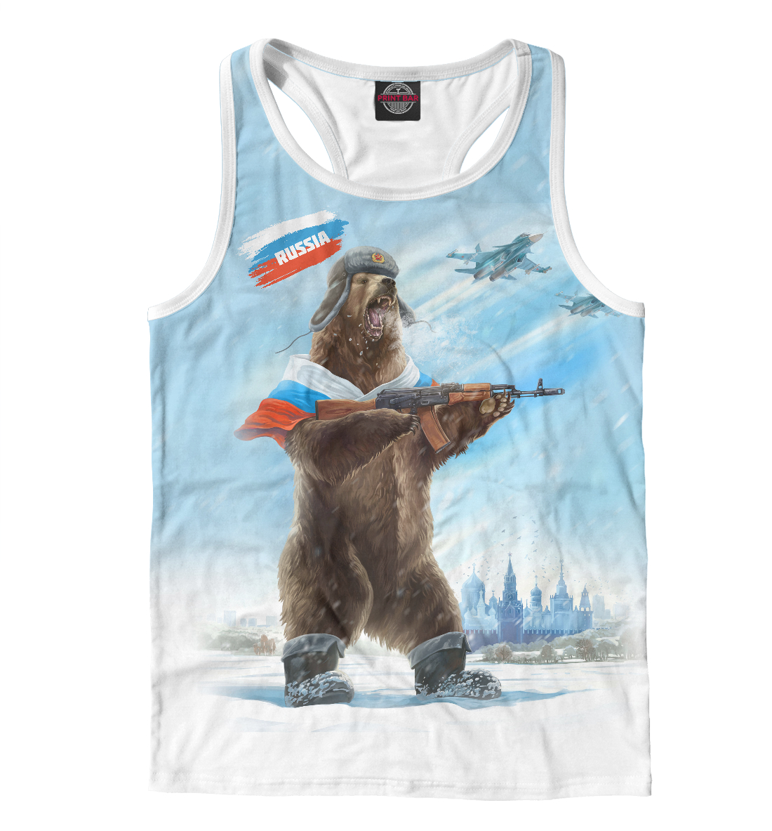 Мужская майка-борцовка с принтом «Русский медведь с калашом»