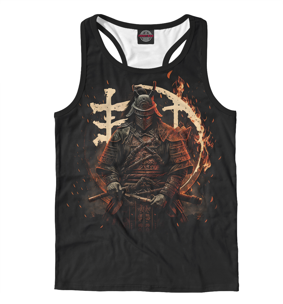 Мужская майка-борцовка с принтом «Самурай и иероглифы»