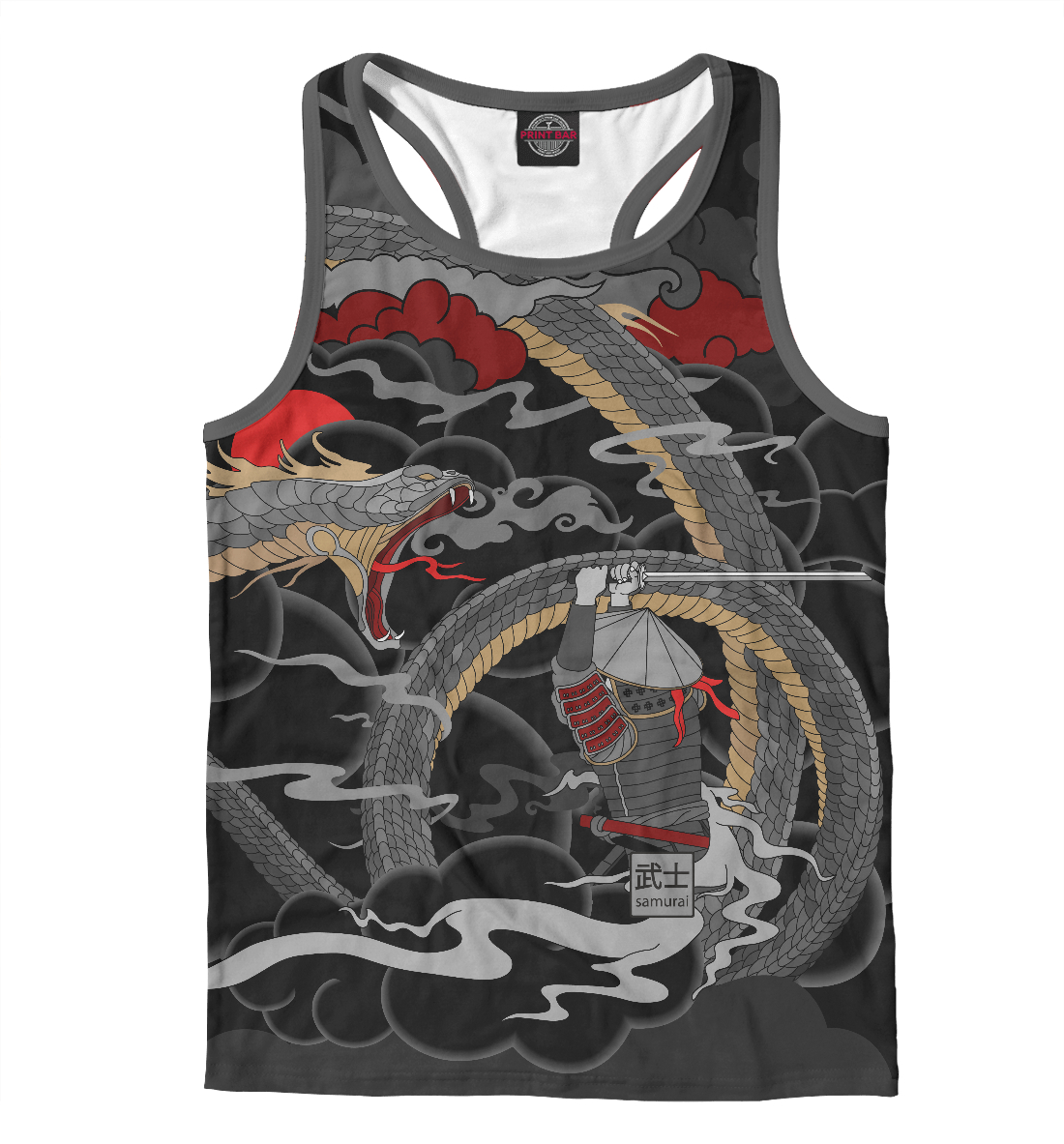 Мужская майка-борцовка с принтом «Самурай и змея»